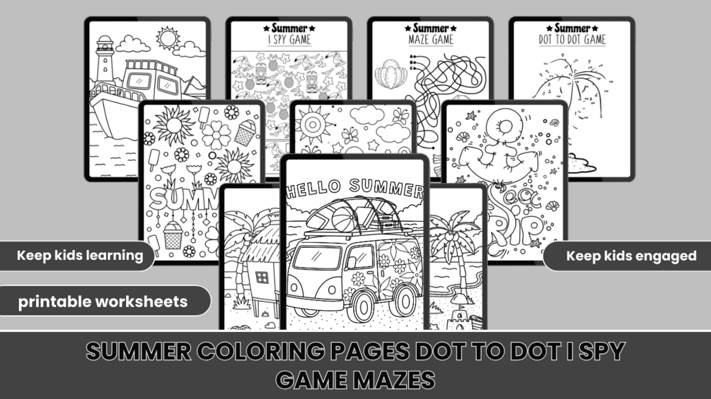Summer Coloring Pages, Dot to Dot, I Spy, and Mazes – Printable Activity Pack for Kids